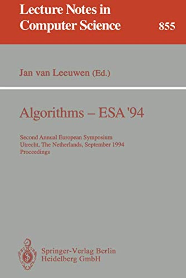 This volume presents the proceedings of the Second Annual European Symposium on Algorithms (ESA '94), held near Utrecht, The Netherlands in September 1994. ESA is the premier European conference on algorithms.