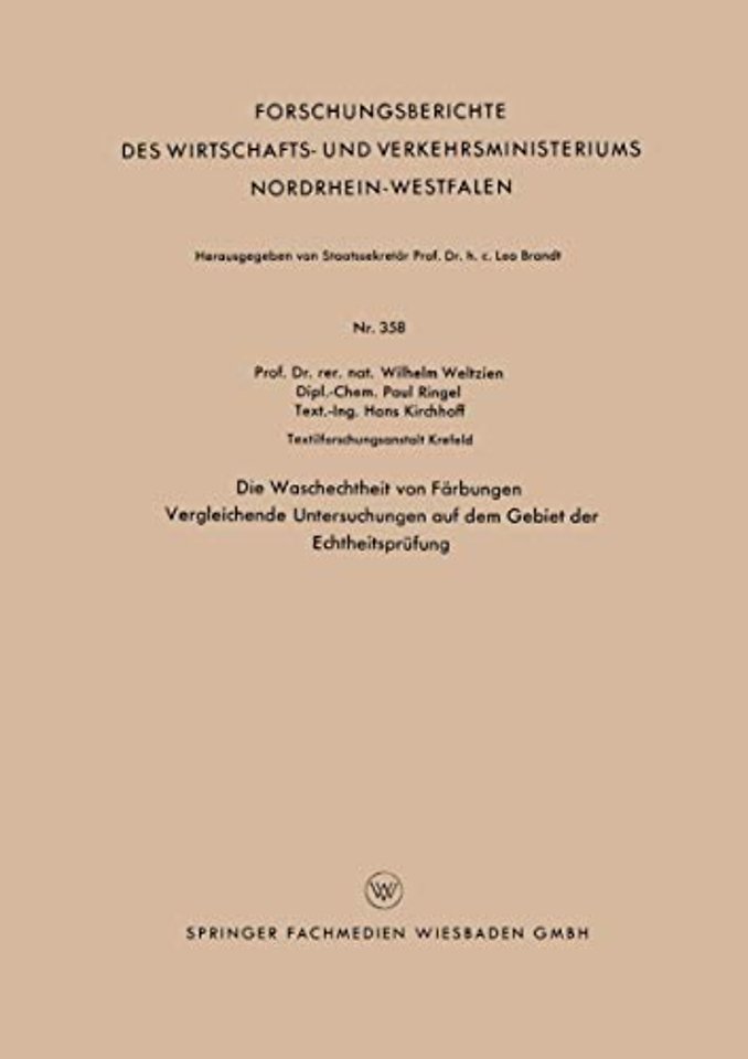 Gliederung.- I. Einleitung.- II. Grundsätze für die Durchführung der Prüfung der Farbechtheit von Färbungen und Drucken DIN 53 950.- III. Grundsätze für die Beurteilung der Prüfungsergebnisse DIN 53 951.- IV. Bestimmung der Waschechtheit von Färbungen und Drucken DIN 53 956.- V. Zweck der vorliegenden Arbeit.- VI. Auswahl der Textilhilfsmittel für die Waschechtheitsprüfungen.- VII. Auswahl der Farbstoffe für die Waschechtheitsprüfungen.- VIII. Ergebnisse.- IX. Schlußfolgerungen.- X. Anhang: Tafel 1–14 mit Farbmustern.
