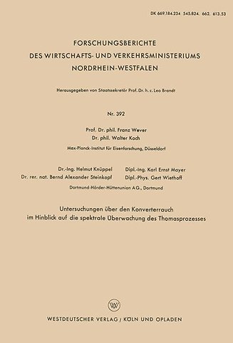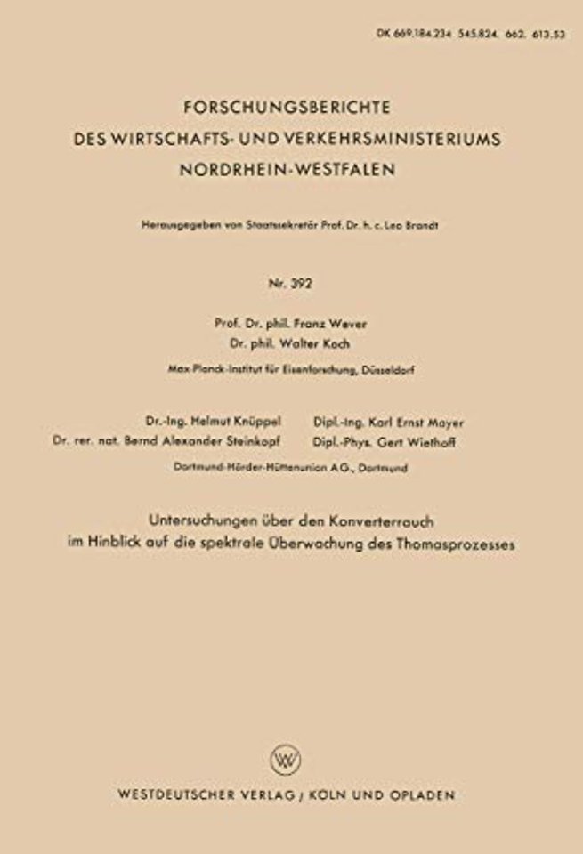 Gliederung.- 1. Der Stand der Prozeßüberwachung.- a) Spektrale Messungen an der Konverterflamme.- b) Messungen am Rauch.- c) Die Aufgabenstellung.- 2. Die Entnahme von Rauchproben am Konverter.- a) Übermikroskopische Präparate.- b) Präparate für die Extinktionsbestimmung.- c) Die Gewinnung von Substanzen für die Mikroanalyse.- d) Die Gewinnung von Substanzen unter Luftabschluß.- e) Die Gewinnung von Proben zur Bestimmung der Rauchmenge und der Rauchzusammensetzung.- 3. Die optische Deutung der Spektrometerkurve.- a) Die Bestimmung der Teilchengröße und Teilchenform des Rauches.- b) Die optischen Eigenschaften des Konverterrauches.- c) Die optischen Vorgänge in der Konverterflamme.- 4. Die metallurgische Deutung der Spektrometerkurve.- a) Die Zusammensetzung des Konverterrauches.- b) Die Rauchmengen in den verschiedenen Zeitabschnitten.- c) Der Rauch als Produkt der metallurgischen Reaktion.- 5. Zusammenfassung.- 6. Literaturverzeichnis.