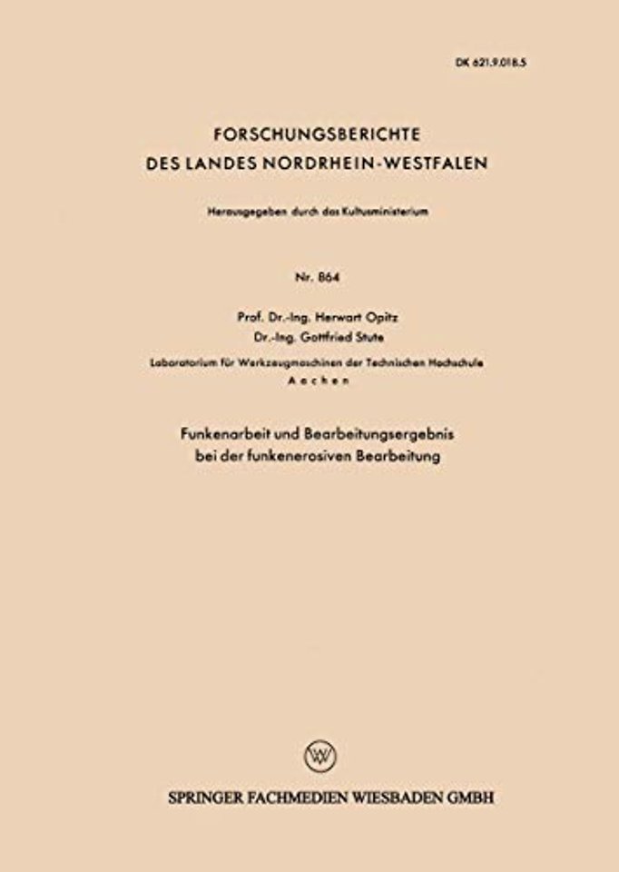 Gliederung.- 1. Die Funkenerosion, ein neuartiges Bearbeitungsverfahren.- 2. Stand der Erkenntnisse über die Funkenerosion.- 3. Die Messung von Bearbeitungsergebnis und Funkenleistung.- 4. Die Abhängigkeit des Arbeitsergebnisses von Art und Größe der Funkenleistung.- 5. Der mögliche Bereich der Funkenleistung für die Anwendung der Funkenerosion.- 6. Literaturverzeichnis.- 7. Verzeichnis der verwendeten Abkürzungen.