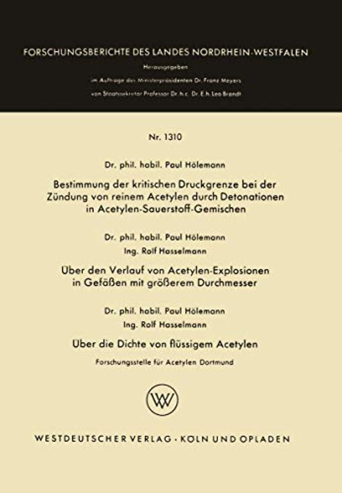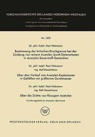 Bestimmung der kritischen Druckgrenze bei der Zündung von reinem Acetylen durch Detonationen in Acetylen-Sauerstoff-Gemischen. Über den Verlauf von Acetylen-Explosionen in Gefäßen mit größerem Durchmesser. Über die Dichte von flüssigem Acetylen